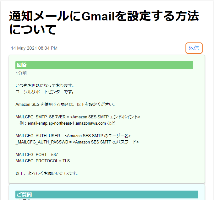 既存お問い合わせへの返信
