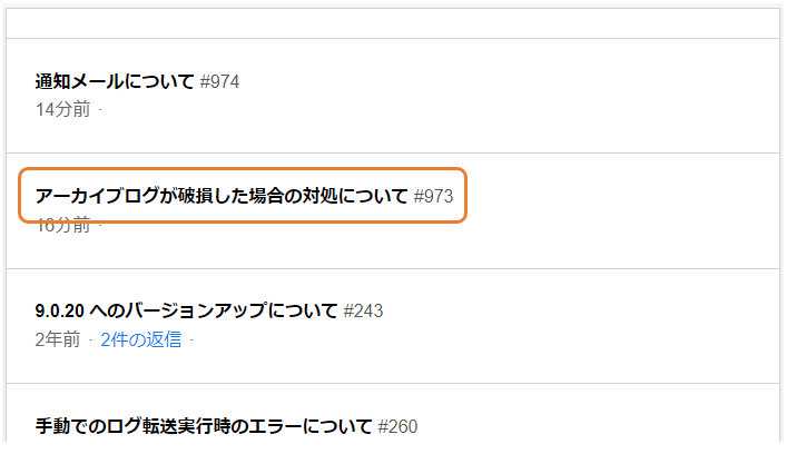 2. お問い合わせ一覧の中から参照されたいお問い合わせの「件名」をクリックします。