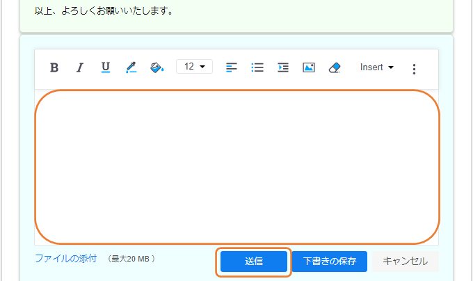 2. 返信フォームに返信内容を入力し、[送信]をクリックします。